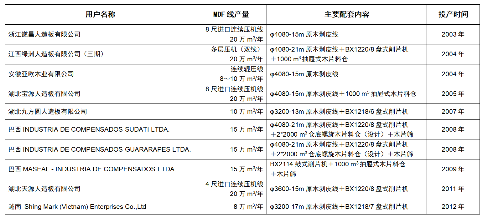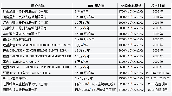 能源中心(HP人造板工厂热能供应系统)业绩表